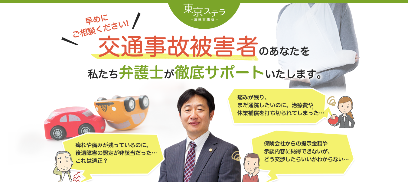 交通事故問題解決専門のおすすめ弁護士Aは【ステラ法律事務所】です。